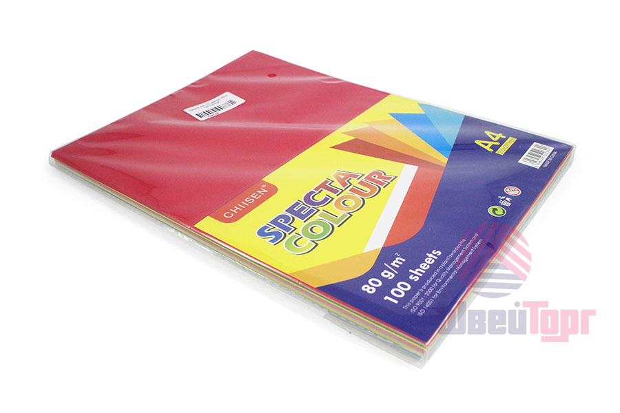 В 1 упаковке 100 листов (10 цветов по 10 штук), плотность - 80 г/м².