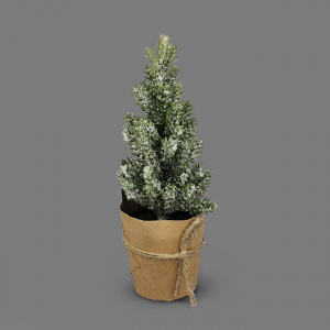Создайте уютную зимнюю сказку с этой миниатюрной ёлочкой! Она покрыта кристаллами снега и крепко установлена в миниатюрный горшочек из крафта.