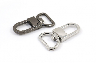 Металлический карабин №1504 с поворотным полукольцом — это надёжный и функциональный элемент фурнитуры, идеально подходящий для пошива сумок, рюкзаков, создания брелоков и других аксессуаров. Изготовлен из полированного металла с качественным покрытием, он обеспечивает долговечность использования и эстетичный внешний вид. Карабин доступен в двух цветах: никель и тёмный металл, что позволяет выбрать оптимальный вариант для различных дизайнерских решений. Поворотное полукольцо обеспечивает удобство использования и гибкость в креплении, подходит для стропы шириной 1,5 см. Надёжный пружинный механизм карабина позволяет легко и без усилий присоединить или снять элемент изделия. Общий размер карабина 2,2х4,1 см.