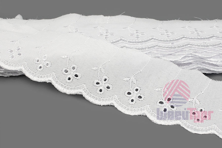 Прошва выполнена из мягкого хлопка с изящной машинной вышивкой и перфорациями. Создаёт эффект нежного кружева и приятна к телу.