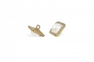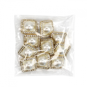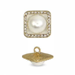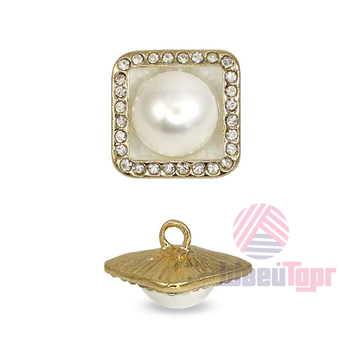 Элегантная пуговица квадратной формы с мягкими углами, станет изысканным акцентом вашего изделия. Её оригинальный дизайн сочетает в себе акцентную жемчужную бусину, обрамлённую тонкой полоской мелких страз, которые эффектно переливаются на свету. Размеры пуговицы: 16х16 мм.