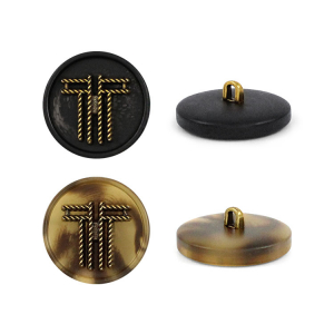 Главная особенность данной пуговицы – декоративный накладной элемент, который создаёт яркий акцент. Благородный бронзовый цвет центрального элемента, эффектно контрастирует с основными цветами пуговицы – светло-бежевый, кофейный и чёрный, позволяя подобрать идеальный вариант под любой стиль.