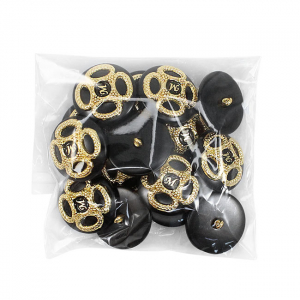 Пластиковая пуговица на ножке с шикарным золотым декором. В центре – буква «M» в обрамлении симметричного позолоченного узора. Доступна в двух классических сочетаниях: крем с золотом и чёрный с золотом. Яркий акцент для создания смелого образа.