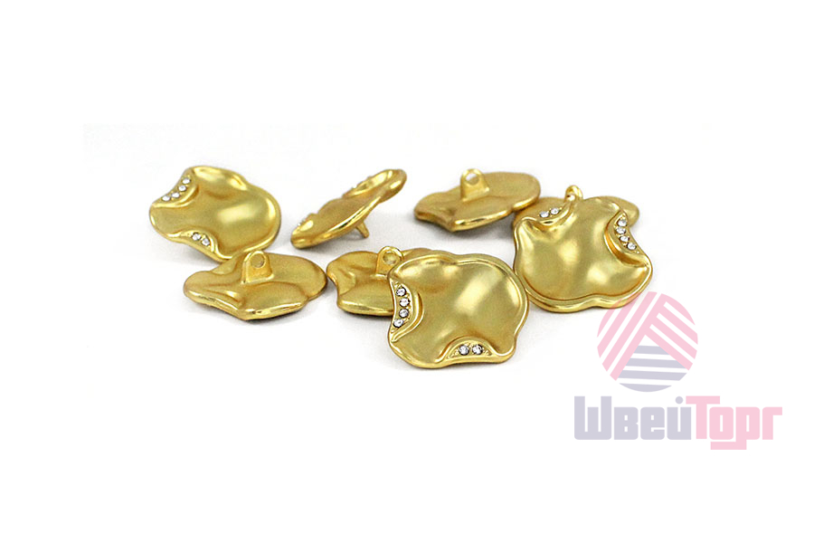 Стильная металлическая пуговица на ножке, имеет неправильную форму (размеры габаритные - 23х23 мм). Пуговица станет отличным украшением ваших костюмов и жакетов.