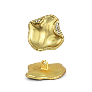 Оригинальная пуговица для тех, кто ценит современный дизайн и внимание к деталям. Её уникальная форма в виде «кляксы» и матовое золотое покрытие создают сдержанный и стильный акцент. Мерцание мелких стразов добавляет нотку роскоши, делая эту пуговицу идеальным выбором для дизайнерских проектов и преображения вашего гардероба.
