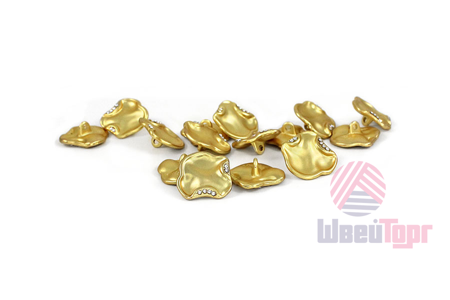 Стильная металлическая пуговица на ножке, имеет неправильную форму (размеры габаритные - 18х18 мм). Пуговица станет отличным украшением ваших костюмов и жакетов.