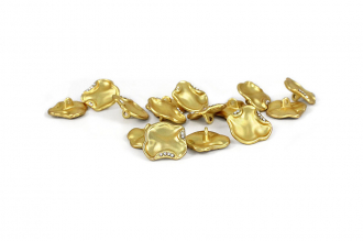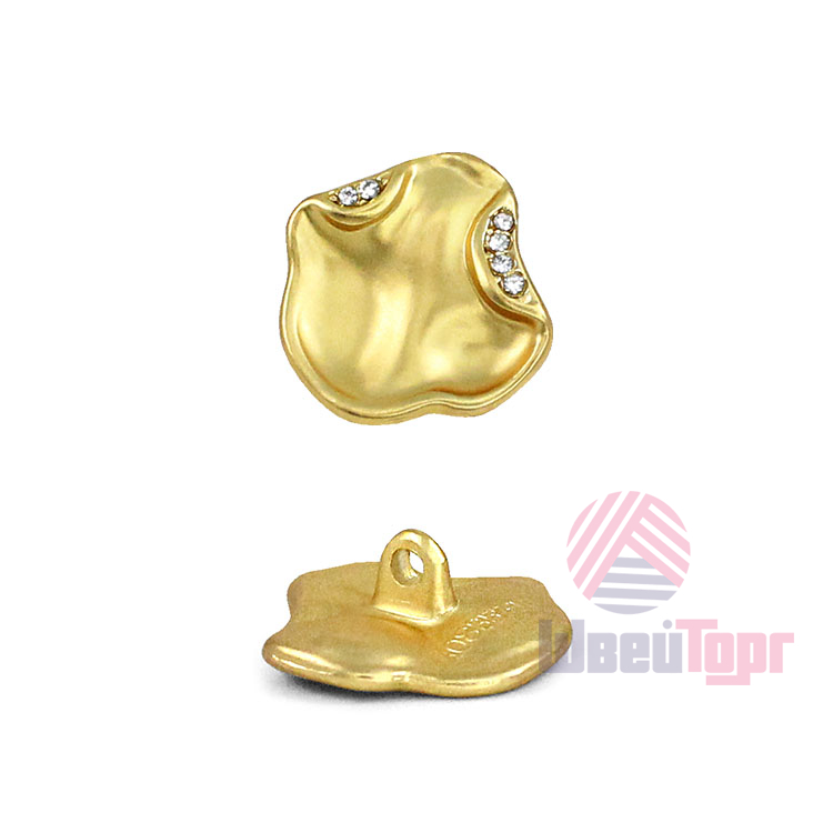 Оригинальная пуговица для тех, кто ценит современный дизайн и внимание к деталям. Её уникальная форма в виде «кляксы» и матовое золотое покрытие создают сдержанный и стильный акцент. Мерцание мелких стразов добавляет нотку роскоши, делая эту пуговицу идеальным выбором для дизайнерских проектов и преображения вашего гардероба.