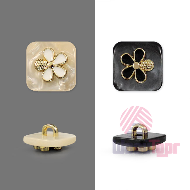 Пластиковая пуговица на ножке, имеет квадратную форму (размер 12х12 мм), станет отличным украшением для костюмов, жакетов и блуз.