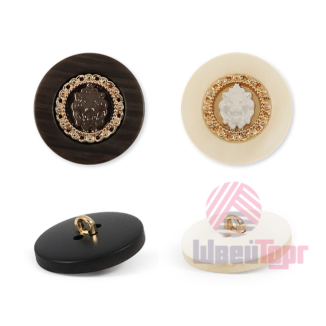 Эта пластиковая пуговица на ножке станет акцентной деталью для вашего костюма или жакета. Её оригинальный вид создаёт фактурная «рамка», окаймляющая центр, где расположился накладной элемент в виде головы льва.