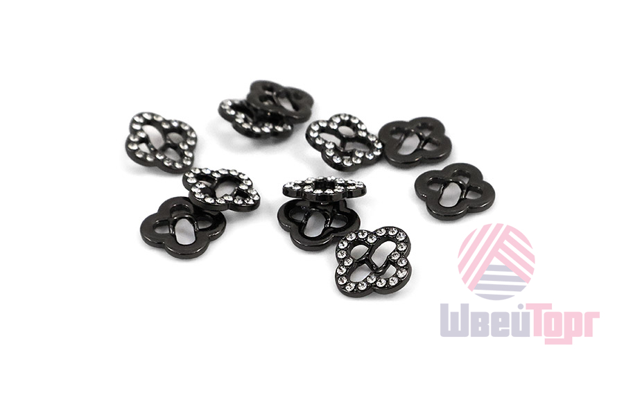 Эта пуговица на ножке станет ярким акцентом вашего наряда. Металлическая основа пуговицы усыпана множеством мелких страз. Форма пуговицы представляет собой "мягкий" крест, с округлыми углами - нежная и утончённая. Пуговица представлена в двух вариантах: чернённый и серебро.