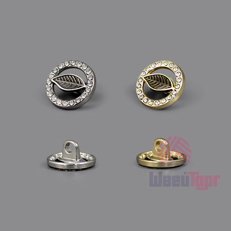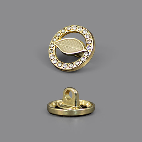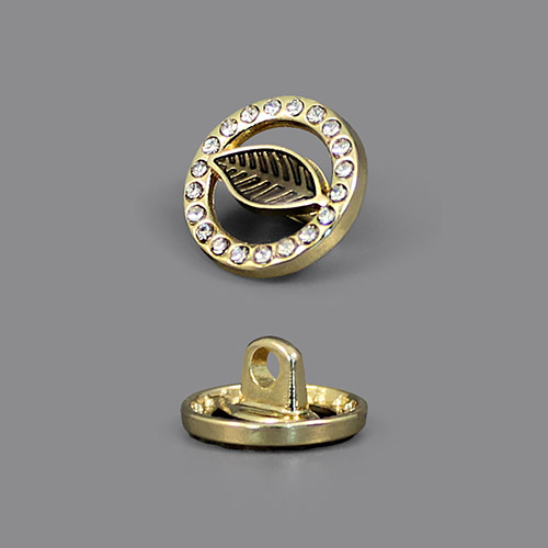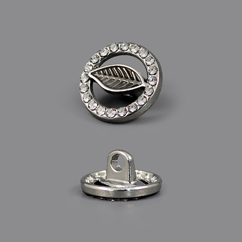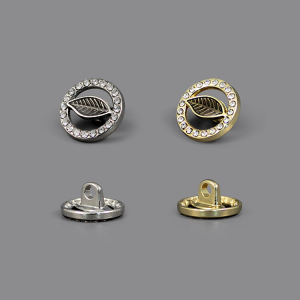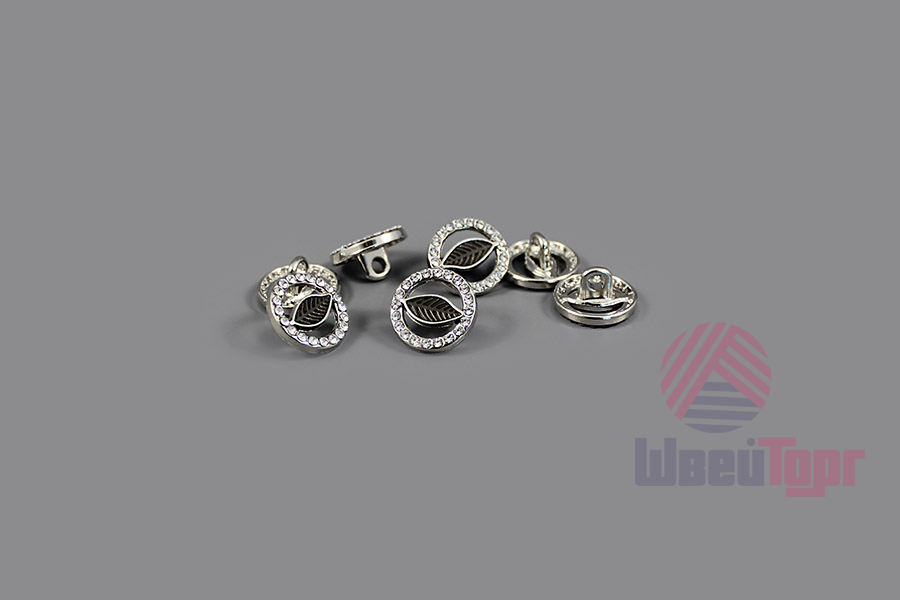 Эта пуговица на ножке станет утончённым акцентом вашего наряда. Металлическая круглая пуговица, усыпанная множеством мелких страз по внешнему краю, с акцентрым элементом в виде лепестка с прожилками. Пуговица представлена в трёх вариантах: золото/коричневый, золото/крем и серебро/тёмно-коричневый.