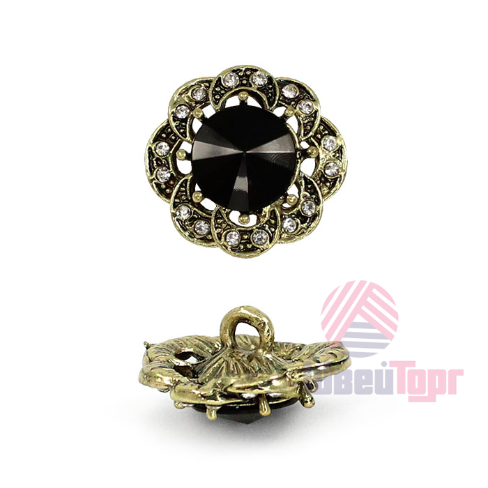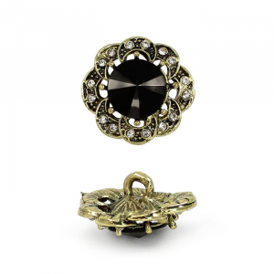 Элегантная пуговица в форме цветка, станет изысканным акцентом вашего изделия. Её оригинальный дизайн сочетает в себе акцентную центральную часть, в виде крупного страза, обрамлённую стилезованными лепестками, усыпанными мелкими стразами. Диаметр пуговицы: 1,9 см.