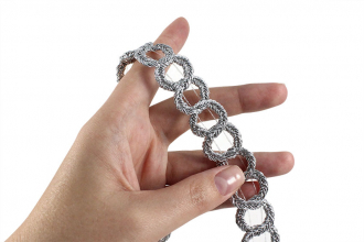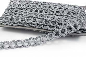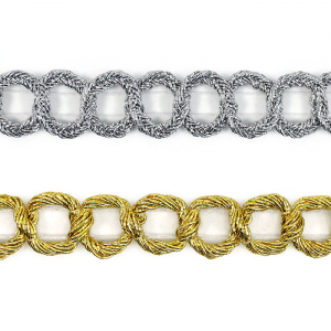 Тесьма доступна в двух цветах: золото и серебро. Она идеально подходит для отделки одежды, декора сценических костюмов, а также для украшения головных уборов и элементов интерьера. Представляет собой прочную плетёную, рельефную тесьму, похожую на звенья цепи. Тесьма пронизана металлизированными нитями, что придаёт ей уникальный блеск. Создавайте свои неповторимые изделия!