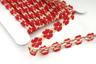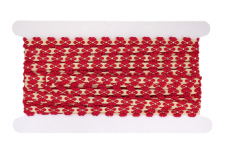 Доступно два варианта расцветки: с голубыми или с красными цветами. Тесьма односторонняя.